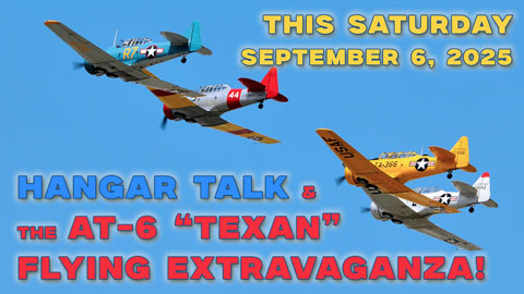 We’ve got a great day planned as we present the “AT-6 ‘Texan’ Flying Extravaganza!” plus a special focus for “Hangar Talk,” and lots to see and do for all ages. Doors to the Museum open at 9:00am and Members are always admitted FREE!